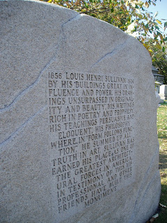 Louis Henri Sullivan, distinguished architect who died penniless because of alcoholism. Pennies are left all over his headstone. Pennies for the penniless, I guess. Sullivan actually designed several tombs here prior to his own arrival.